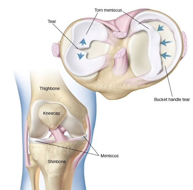 반월판이 찢어졌을 경우 아까 기능 2번에 적었던 역할과 다르게, 반월판이 관절운동을 오히려 방해하는 경우(통증)가 생깁니다. 이러한 경우 반월판 연골을 부분 제거하거나 다듬는 관절경 수술을 시행해 볼 수 있으며, 양동이 손잡이처럼 크게 찢어진 경우에는 응급으로 봉합술을 시행하거나 meniscus 이식술을 생각해 볼 수 있습니다.