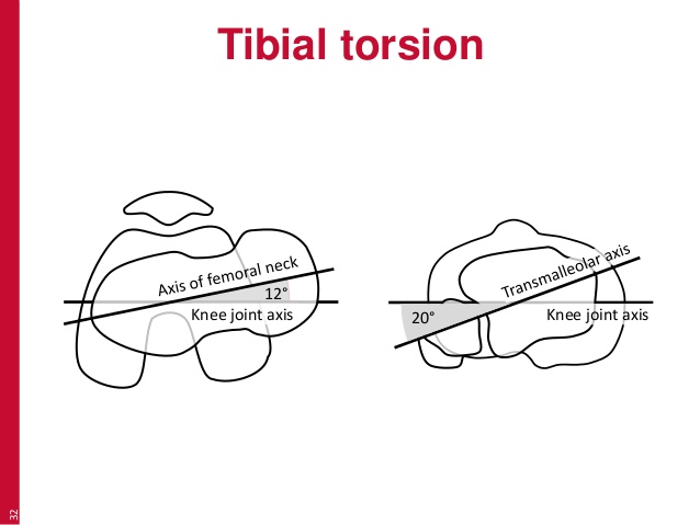 3. Thigh-foot angle : 경골 염전 평가 0-20도 정상 (-10도 이하[경골외회전]나 40도 이상[경골내회전]시 교정술 필요)