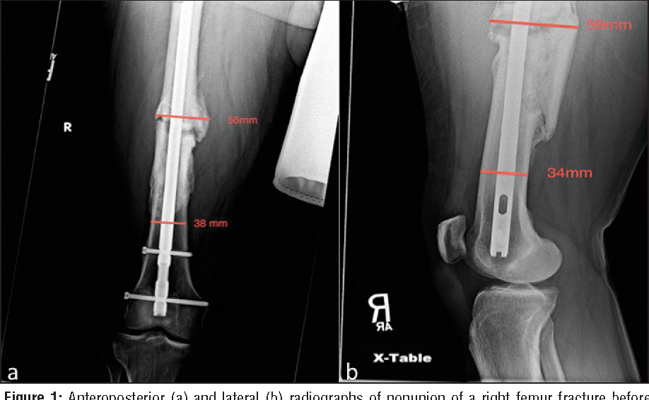아래와 같은 nonunion에서 dynamization으로 골유합을 유도할 수 있습니다.