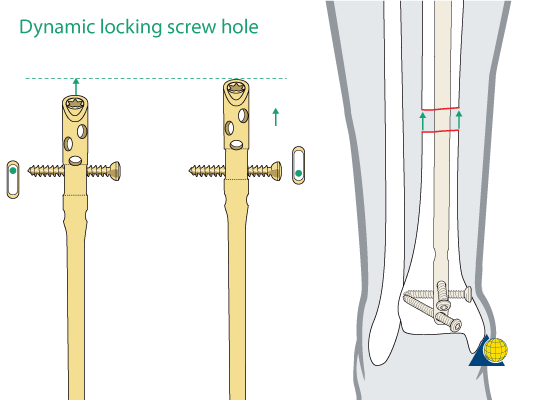 Nail의 구멍에 따라 타원형의 구멍의 경우 dynamic 한 고정을 하게되며 이는 axial load 를 뼈에 그냥 전달하게 됩니다.