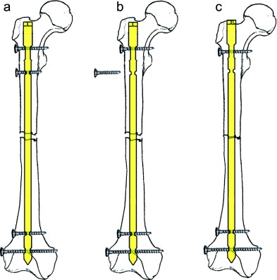 dynamization은 이러한 static screw를 제거함으로써 골 유합을 좀더 가져오게 되는 것입니다. (원위부의 경우 모두 나사를 제거하게되면 관절로 nail이 나올 수 있으니 주의해야합니다.) 이 외에도 골 유합을 위해 reaming 을 하는 것도 도움이 됩니다.