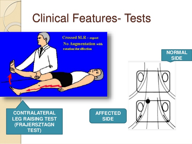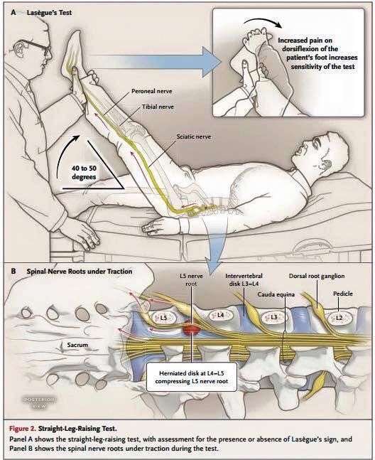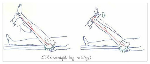 가장 기본적인 신체검사입니다. 30~70도에서 찌릿한 느낌이 있으면 요추 신경근이 튀어나와있음을 의심해볼 수 있습니다.