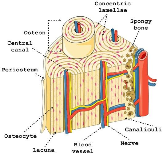 우리가 흔히 골의 층판 구조를 보면서 Haversian system 과 Volkmann system을 확인할 수 있습니다. 이런한 골의 경우 '살아있는 조직' 이라는 것을 아는 것이 중요합니다. 미네랄화 되어있기 때문에 뭔가 물질같이 단단한 모습을 하고 있지만 골세포 안의 Osteroblast와 Osteoclast 등은 계속해서 작용하고 있습니다. 우리가 뼈에 손상을 입었을 때 골절이 회복되는 이유도 같은 이유입니다.