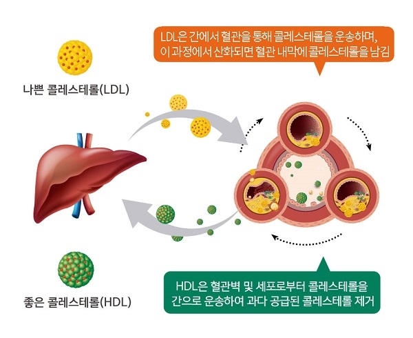 이는 지방의 구조에 따라 나눈 것으로, 구조에 따라 크기가 다르게 됩니다. 고밀도 지방의 경우 혈관을 막지 않기 때문에 좋은 지방이라고 흔히 표현을 하지만, LDL 의 저밀도 지방이 많아지는 경우 혈관에 벽을 만들 수 있어 위험하다고 표현하고 있습니다. 고밀도 지방의 경우 LDL을 조절하는 역할을 하기도 합니다.