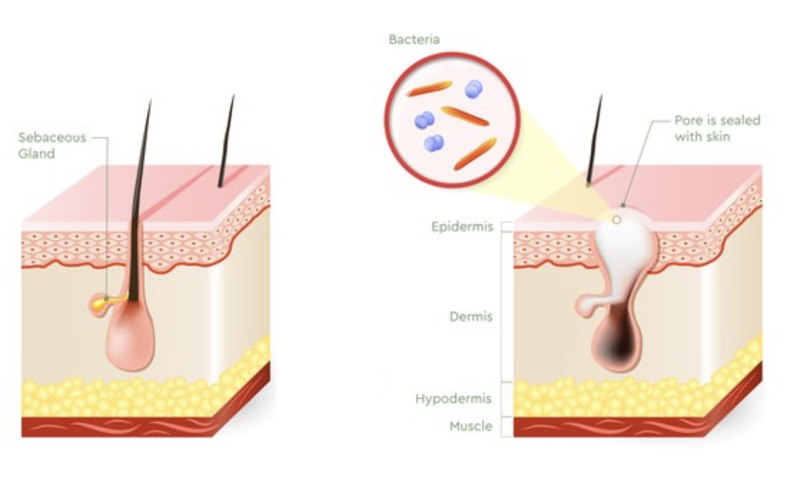 주로 모낭이라고 불리는 hair follicle 부분이 죽은피부세포나 세균에 막히면서 생기는 경우가 많습니다. 기타 진균이나 바이러스 원인도 있을 수 있지만, 대부분 원인 세균으로는 '포도상구균' 이 제일 흔합니다.