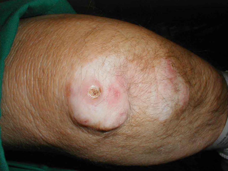 5) 류마티스 결절: 뼈가 튀어나오거나 관절의 한쪽에 만져지는 피하 결절