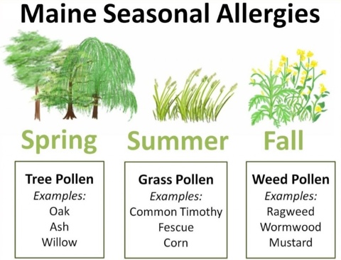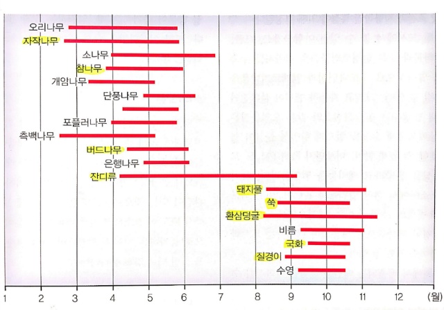 아래는 계절별로 볼 수 있는 항원들입니다. 봄에는 나무들의 항원이, 여름에는 풀이, 가을에는 돼지풀이나 쑥 같은 항원이 주를 이룹니다. 제가 있는 도시에서는 소나무(송진가루) 가 엄청나기 때문에 최근 환자중에 송진가루 알레르기 환자분들이 매우 많습니다. 이 외에도, 집먼지 알레르기나 먼지, 곰팡이 등에 반응을 보여 집(실내)에만 가면 알레르기 증상이 나는 분들도 있습니다.