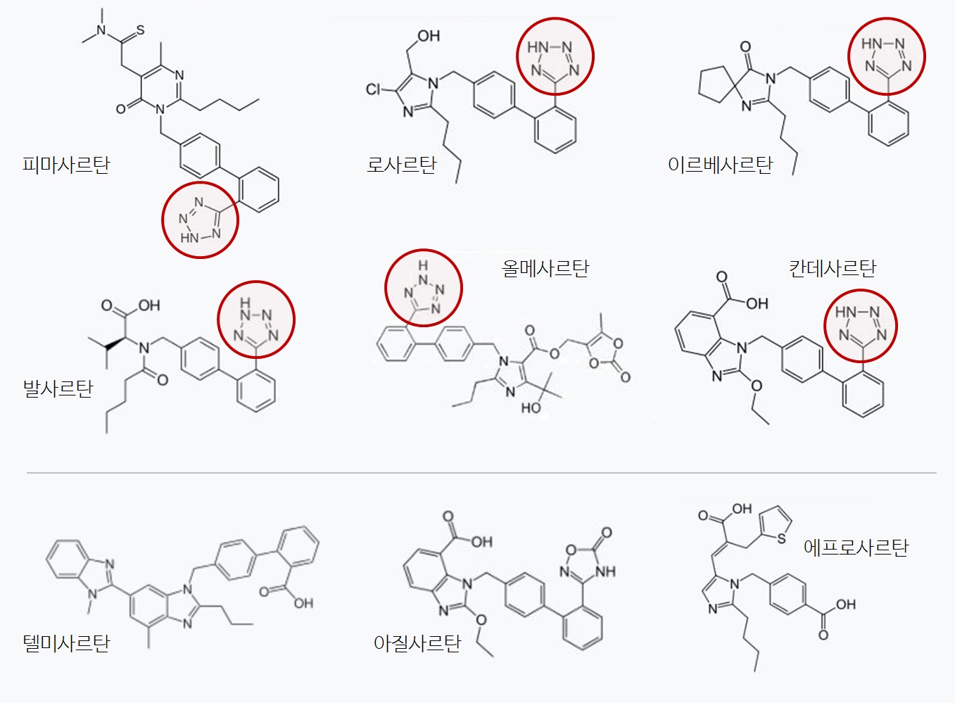 로자르탄의 경우 수산화기와 함께 니트로사민이 달려있는 화학구조를 가지고 있습니다.
