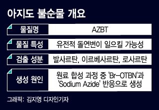결론적으로, 아지도AZIDO 라는 불순물이 일정 용량 이상이면 유전적 돌연변이를 일으킬 수 있는데
