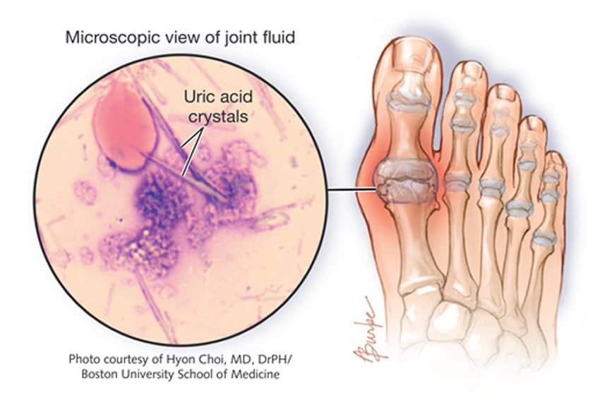 Negative Birefringent Needle 이라고 불리는 모습을 현미경으로 찾으면 통풍인 것 입니다.