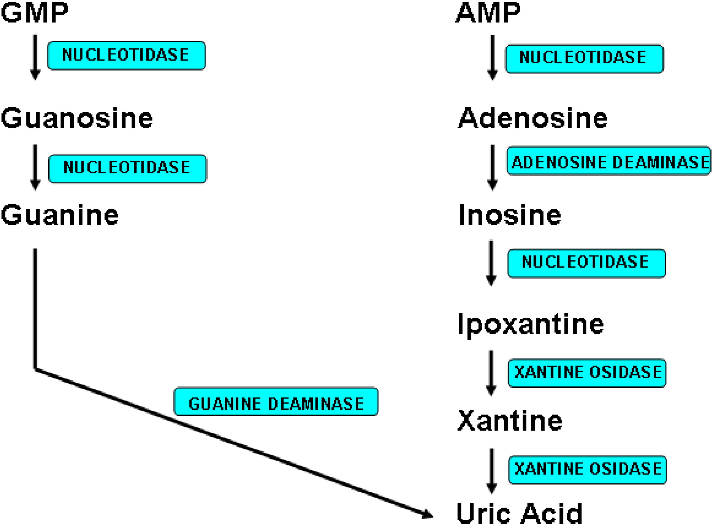 두번째로 해야할 치료는 '요산제거' 입니다. 요산이 생기는 걸 막게하는 방법은 생활습관조절이나, 약물 치료가 있을 것이고 요산이 생기는 pathway(xanthine oxidase)를 막는 allopurinol이나 febuxostat, 요산배출을 늘리는 약물 등을 사용하는 것 입니다. 약물 사용시 신장기능, 신장이식여부 등을 꼭 확인해야하며, 요산 수치가 급격히 떨어졌을 때는 문제가 될 수 있기 때문에 조절 속도도 적당하게 해야합니다.