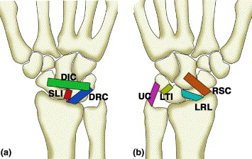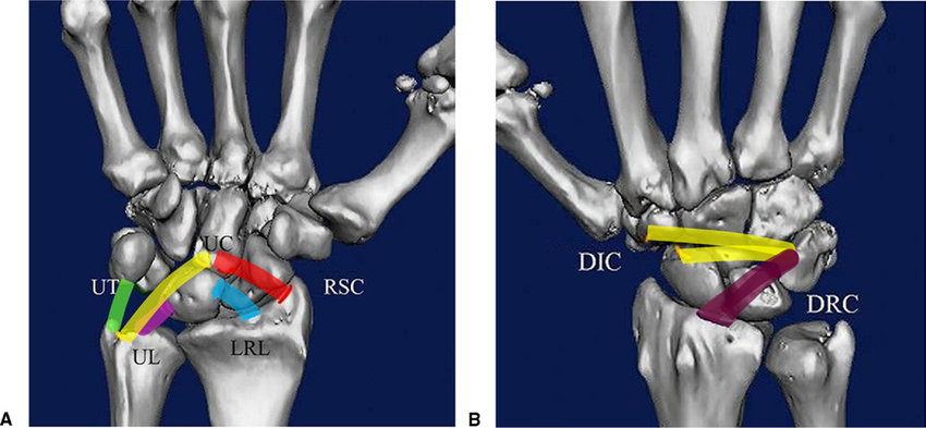 뒤쪽의 경우 Dorsal intercarpal(DIC) 및 Dorsal radiocarpal(DRC) ligament로 구성되어 있습니다.