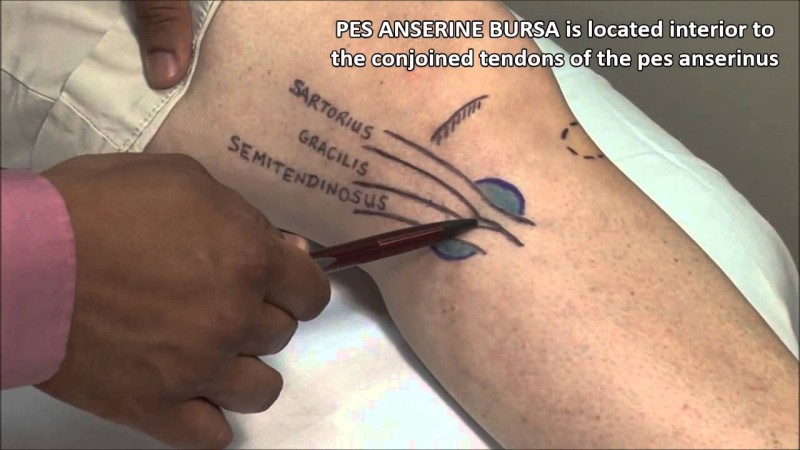 모든 관절에는 마찰을 줄여주기 위한 '낭' 이 존재하게 되는데 이러한 낭이 거위발건 아래에도 위치하게되어 이쪽부분이 마찰되면서 생기는 낭염이 생길 수 있습니다.