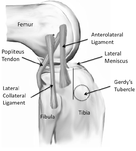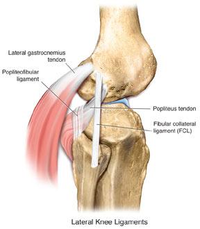 외측인대는 앞측 비골 근위부와 원위 대퇴골(lateral epicondyle) 사이에 붙어있습니다.