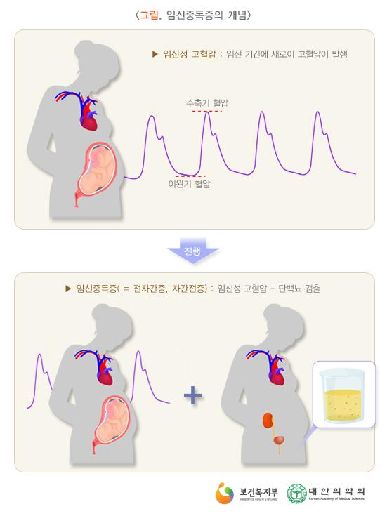 단백뇨와 부종 등이 동반된 경우에는 임신 중독증, 자간전증 이라고 하며, 경련이 동반된 경우에는 자간증이라고 합니다. 이러한 혈압을 관리하는 것이 중요한 이유는, 태아의 사산이나 산모의 위험도가 증가하기 때문입니다. (이 위험도를 낮추는 것을 치료 타겟으로 합니다.)