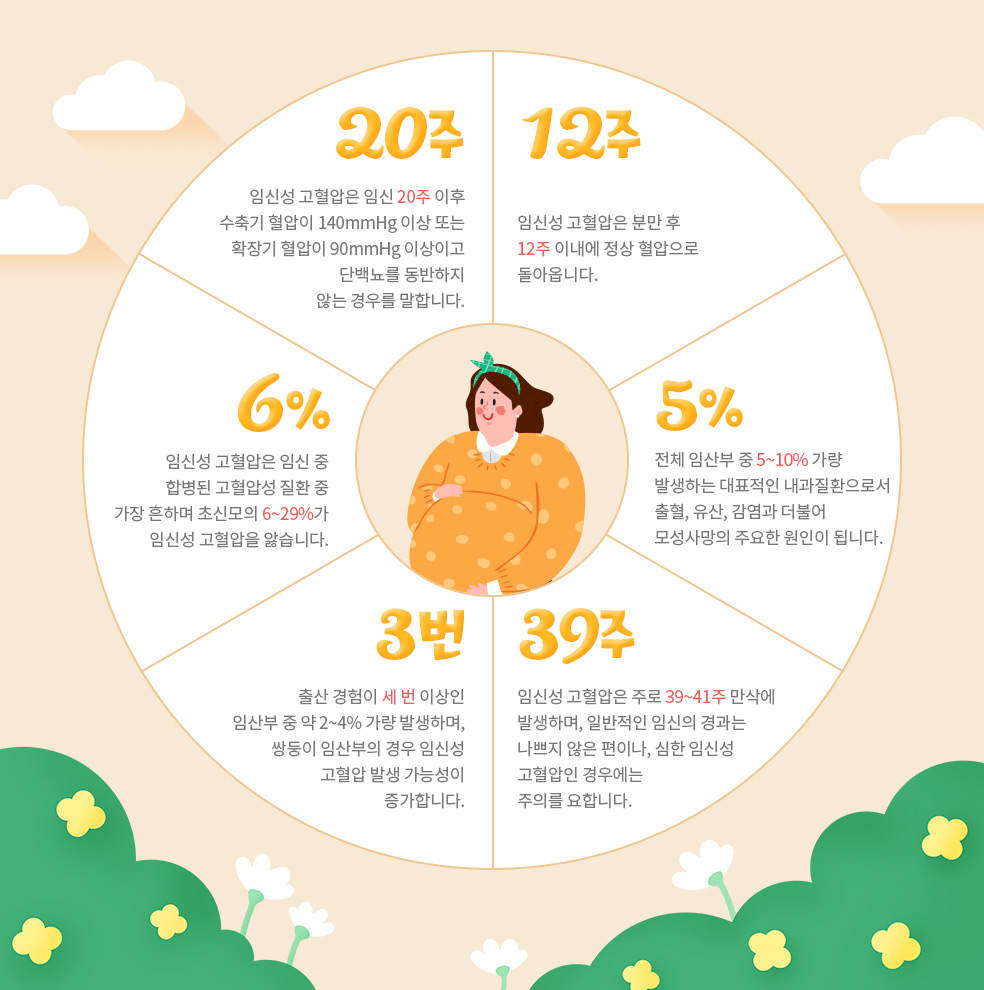 임신성 고혈압이란 임신 중(20주 이후)이나, 분만을 하고난 초기에 발생하는 합병증으로, 수축기혈압이 140mmHg 이상, 이완기 혈압이 90mmHg 이상인 경우를 의미합니다. 동시에, 소변에서 단백뇨가 나타나지 않아야 합니다. 단백뇨가 나올 경우 위험도가 올라갑니다. 임신성 고혈압은 일시적인 고혈압으로써 분만 후 12주 이내에 정상이 되어야 합니다. 과거에는 임신 중독증 등으로 불렸습니다.