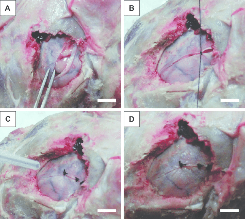 주로 신경외과 에서 brain 수술을 할 때 거의 기본으로 많이 할 것 같은 procedure 입니다. Dura 라는 것은 간단하게 뇌와 척수를 싸고 있는 가장 바깥쪽의 막이라고 생각할 수 있습니다. 이 안에 CSF와 뇌실질, 척수실질, 뇌신경 등이 들어있는 것이죠. 정형외과에서도 척추수술을 할 때 간혹가다 dural 을 repair 하는 경우가 있습니다.