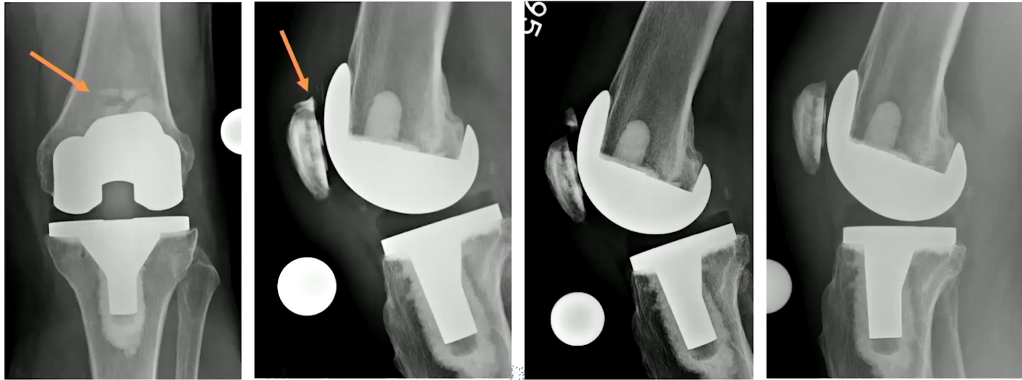 인공관절 후 슬개골 골절은 단순한 경과 관찰 보다는 기능 회복을 위한 수술 가능성이 높은 케이스 이기 때문에 주의깊게 보면 좋을 것 같습니다.