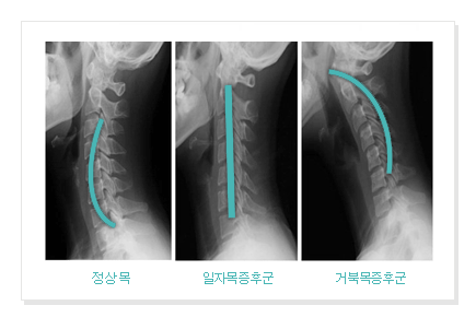 정상적인 목 상태에서 계속된 불균형한 자세로 인해 -> 일자목 -> 거북목 으로 진행이 됩니다.