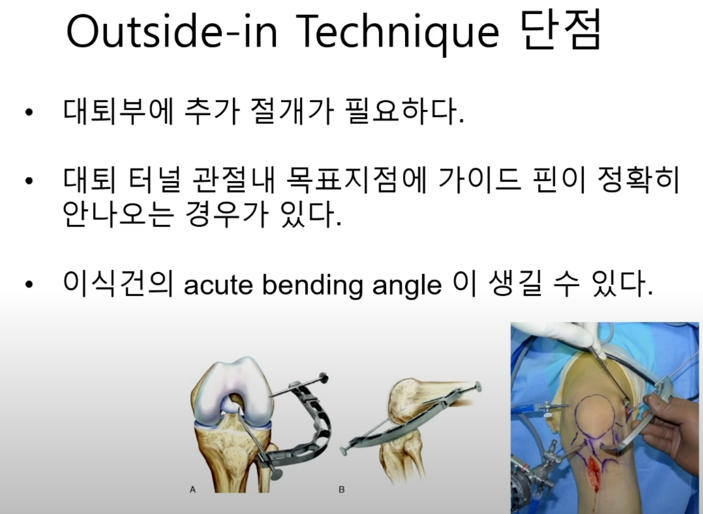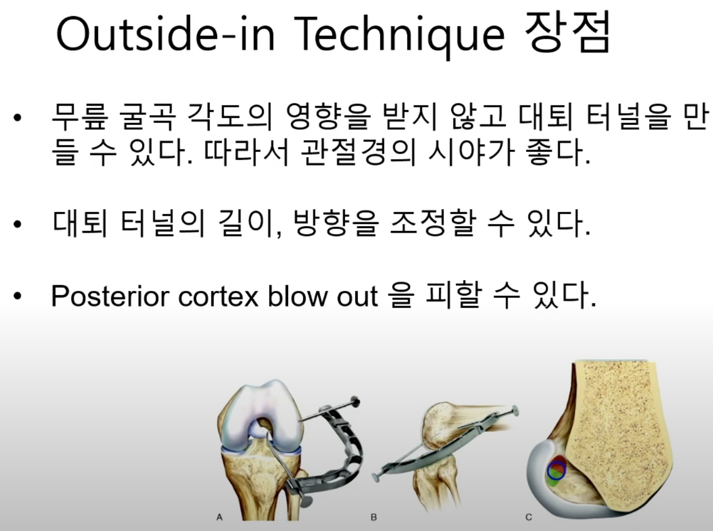 이전에 제가 작성했던 포스팅 입니다. 재건술 분야도 점진적으로 발전하고 있는 분야라고 생각됩니다. Open Reconstruction을 응용하여 만든 관절경 기술인 Outside-in Technique은 정확도가 높습니다.
