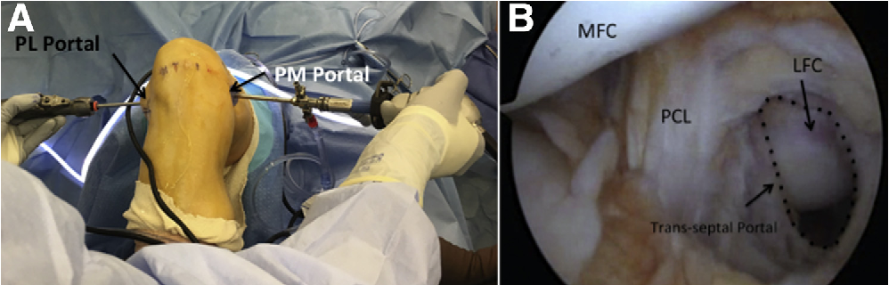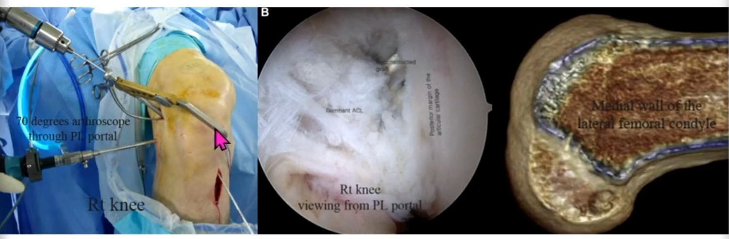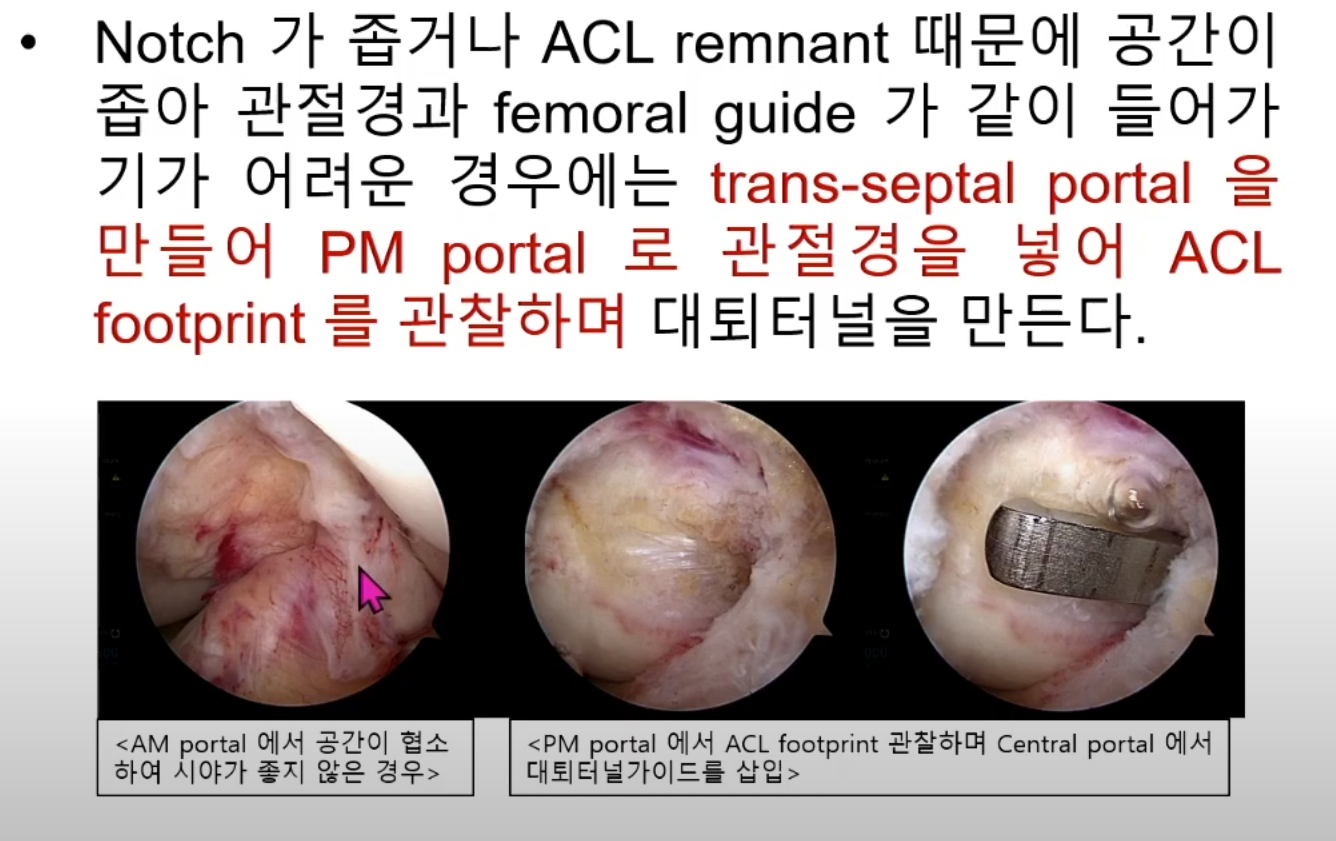 - Posterior 관절경 의 경우 PL, Trans-septal portal을 이용하여 ACL을 보존할 수 있습니다.