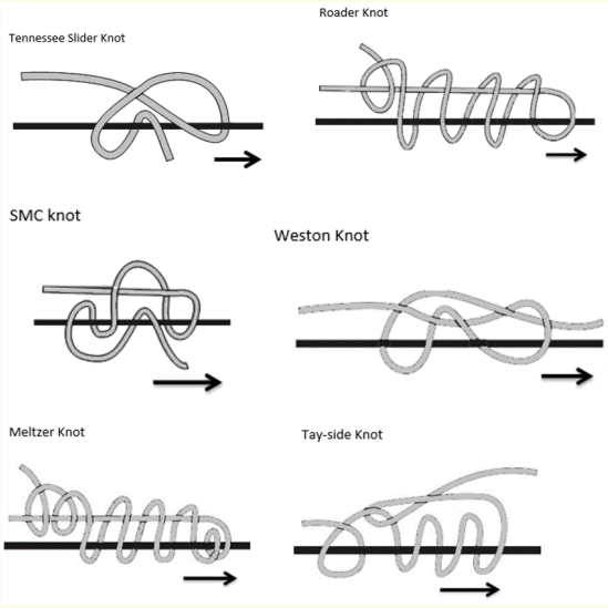 Duncan Knot의 경우 Sliding non-locking knot 로, SMC knot의 경우 Sliding Locking knot로 이해하면 쉽습니다.