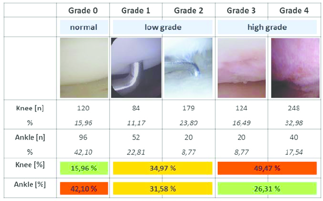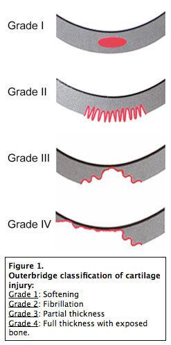Cartilage Damage를 판별하는 기준에는 Outerbridge classification 을 사용합니다.