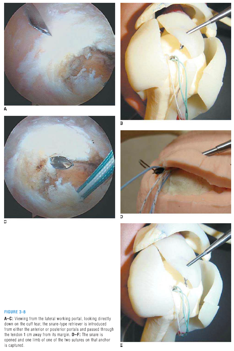tear 크기에 따라 봉합의 가능성을 확인하게 되며, tear의 형태에 따라서 꼬매는 technique도 다소 변하게 됩니다. (L shape의 경우 등등) massive tear의 경우 많은 anchor suture가 필요한 경우에는 차라리 open repair 를 시행하는 편이 더 좋을 수도 있습니다. 최근에는 Superior Capsular Reconstruction 을 시행하기도 합니다.