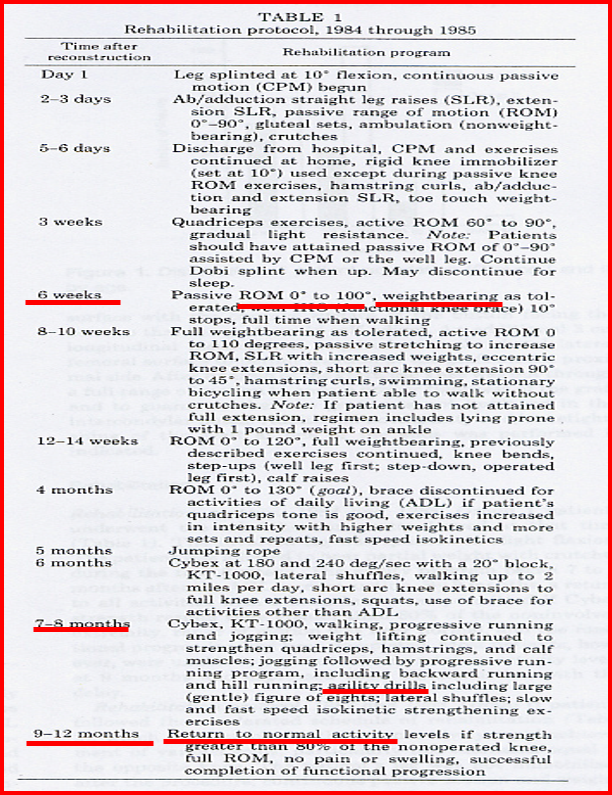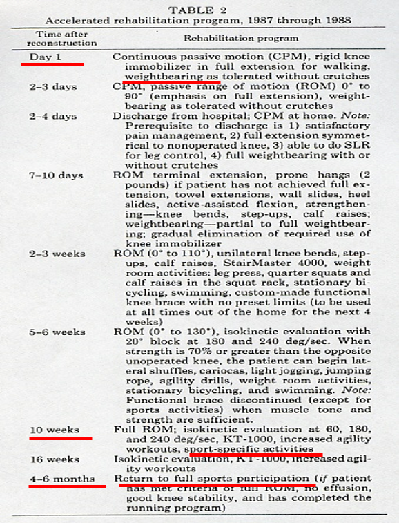 운동선수 들에게는 조금더 가속화 된 재활 과정도 있습니다. 첫날부터 체중부하를 하고 5~6주부터 0~130도의 ROM을. 4개월부터 일상적인 운동상태로 돌아가는 방법 입니다.