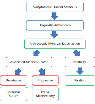 통증이 없는 경우, 대부분 경과관찰이 치료이며, mechanical symptom 이 심한 경우에는 partial menisectomy 와 saucerization을 시행할 수 있습니다. 쉽게 생각하면 meniscoplasty 라고 보면 될 것 같습니다. 3형의 Wrisberg variant의 경우 meniscus를 꼬매주어야하는 경우도 있습니다. 수술 후에도 지속적으로 통증이 있는 경우 연골판을 교체하는 meniscus allograft transplantation을 고려해 볼 수도 있습니다.