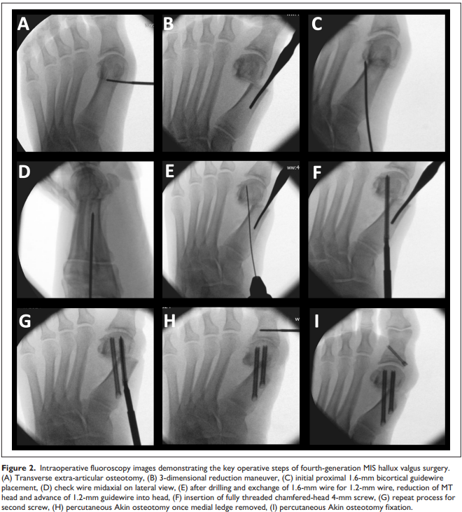 3세대와 비교하여 특별하게 크게 달라진 것은 없으나 임상적 예후가 좋은 것으로 논문이 나왔으니 앞으로는 이러한 수술법도 많이 늘어날 수 있을 것 같습니다. 1991년 이런 미세 수술이 발명된 이후, 이런 작은 발전들이 모여 현대 수술기법이 되었을 것 입니다. Akin 은 기존 그대로 open wedge style로 추가적인 HVA을 교정해 줍니다.