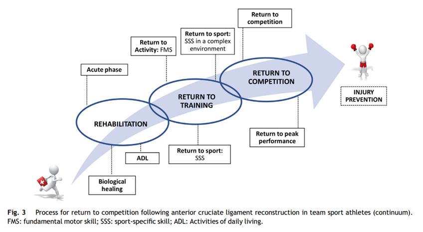 재건술을 하는 목표는 손상된 전방십자인대의 기능을 대체할 수 있는 구조물을 만들고, 이를 이전의 운동 능력만큼 기능을 할 수 있게 만드는 것에 있습니다. 물론 구조적으로 바로 로봇처럼 이식 후에 기존의 기능을 대체하면 좋겠지만, 인체는 다르기 때문에 수술 후에 어느 정도 Bone to Tendon healing이 되기 전까지는 (Retear 등의 확률이 있기 때문에) 단계별, 강도별로 재활을 시작해야 합니다.