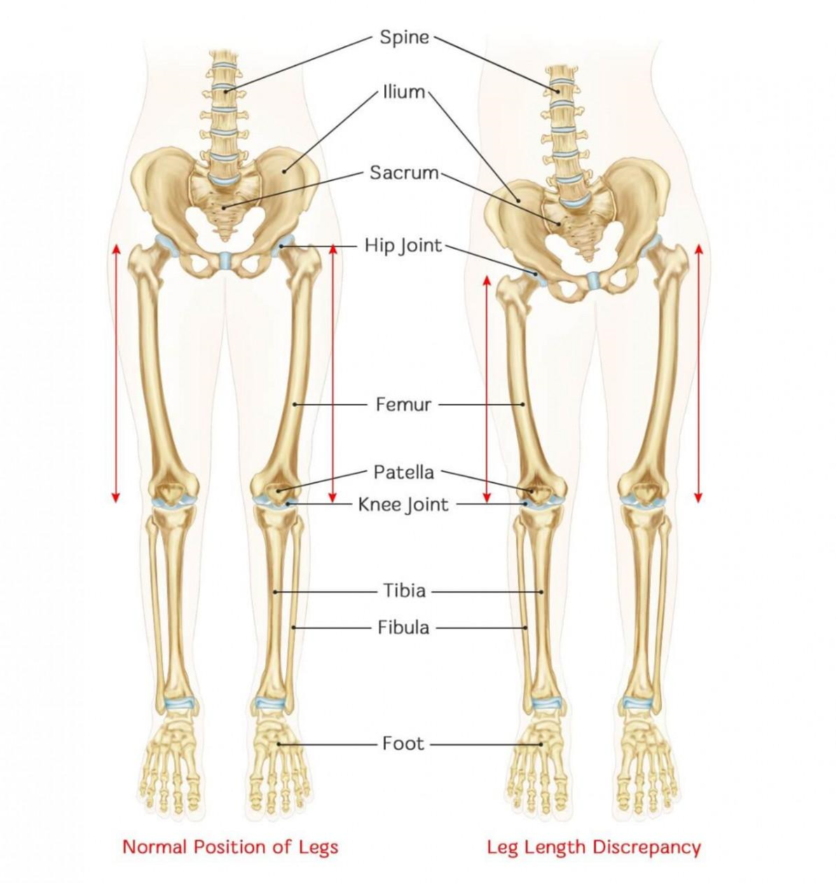 사지 부동의 원인은 정상 측을 기준으로 단축된 경우와, 증가된 경우로 나눌 수 있습니다.