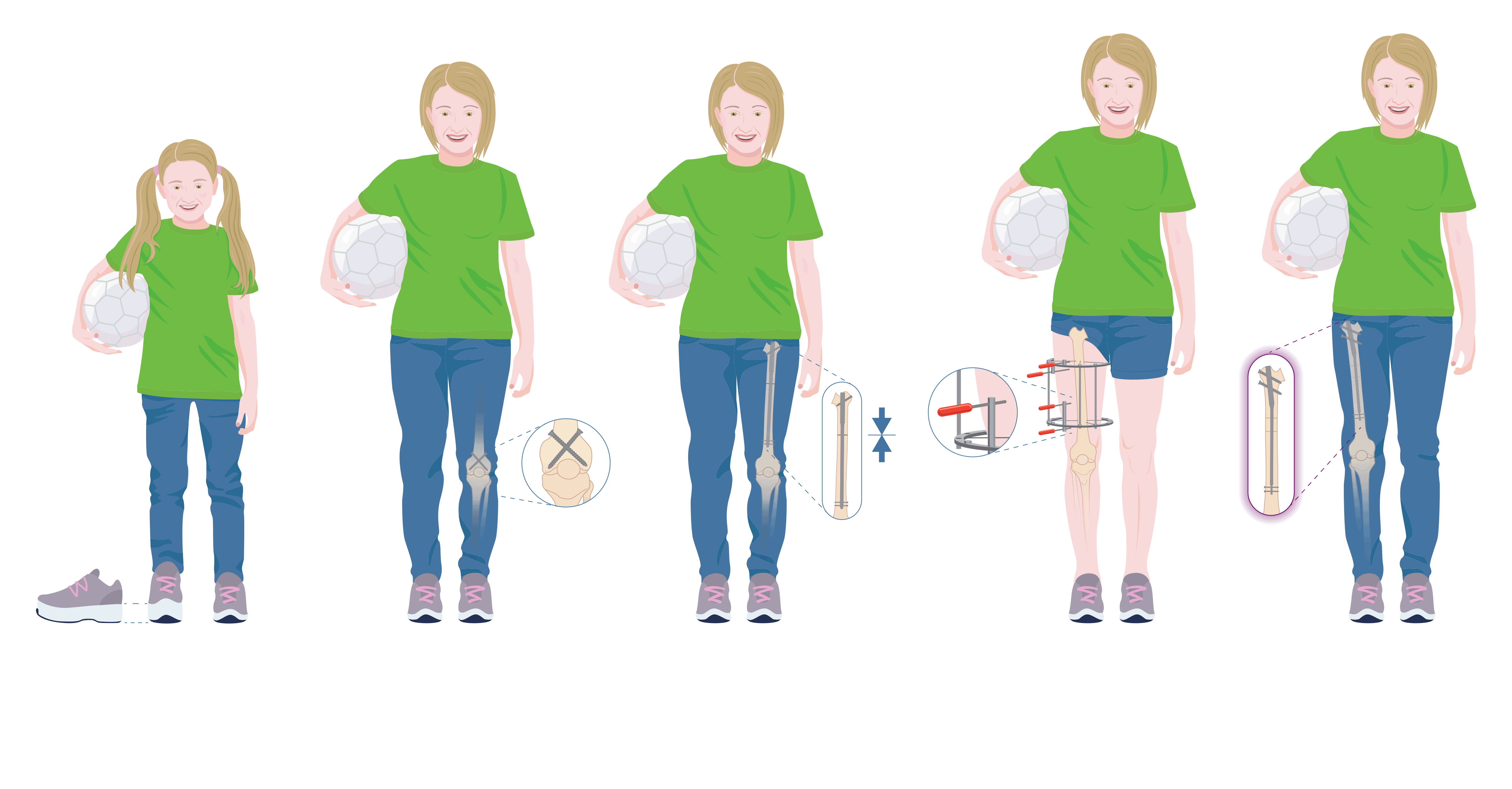 | 성인환자 | 골단축술 | 골연장술 | 골연장술 | 골연장술+골단축술 | 절단술+의지장착 | |