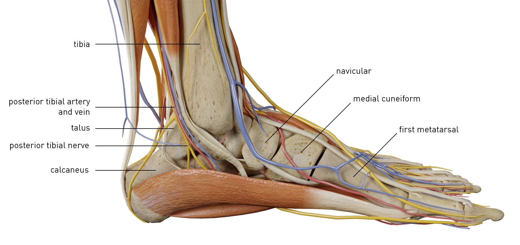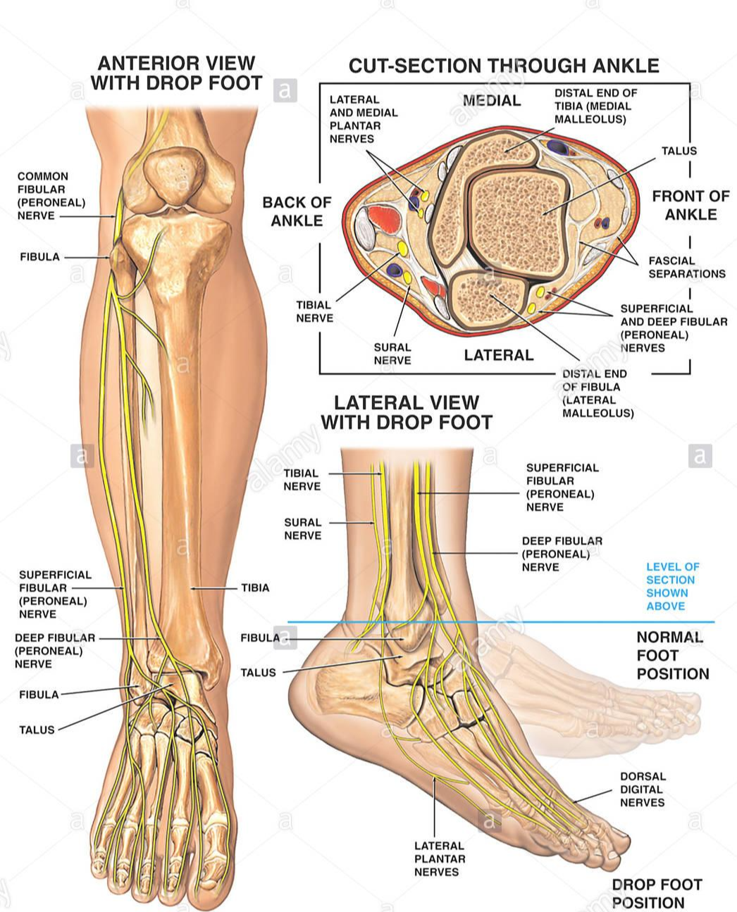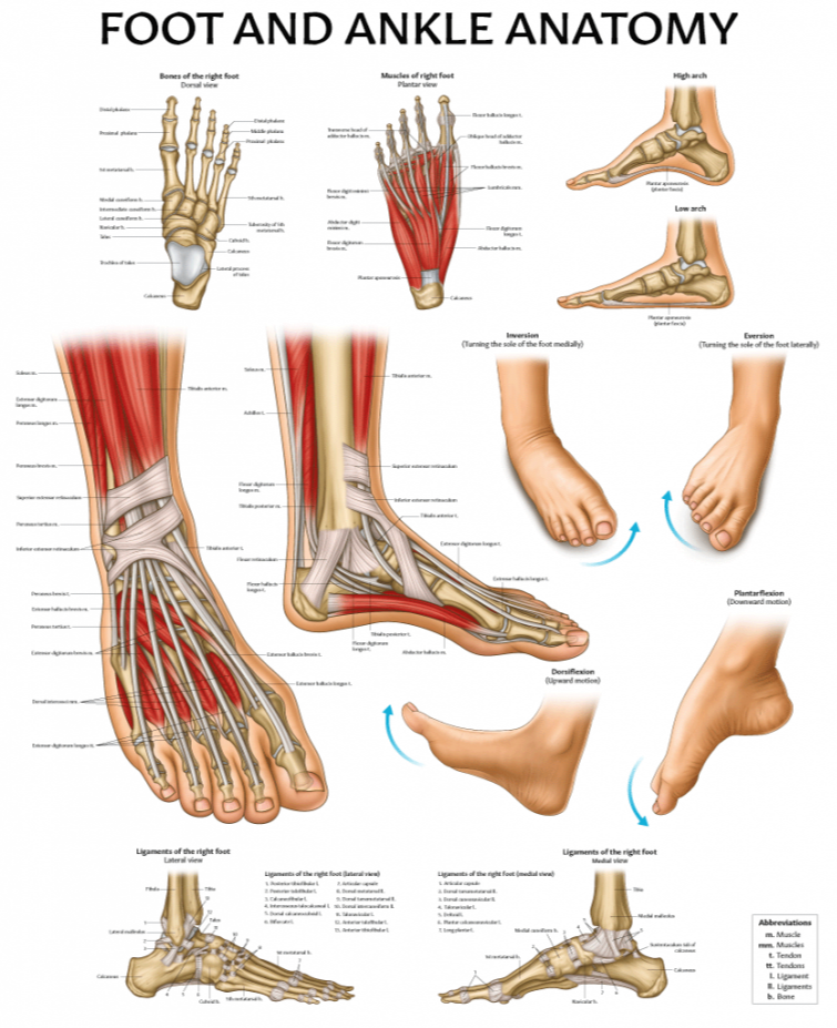 발의 해부학도 생각보다 간단한 편입니다. 척추에서 나온 신경이 비골신경과 후경골신경으로 나뉘어지게 되는데 이는 각각 말초로 뻗어나가게 됩니다. 근육의 경우도 작은 소근육들이 많이 있지만 크게 움직임에 관여하는 근육은 몇개 되지 않습니다.
