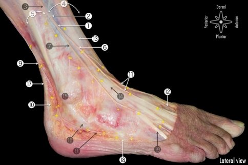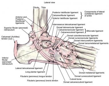 그 중 바깥쪽이 가장 흔하게 다치는 인대들이며, 임상적으로 중요한 인대들입니다. 외측을 구성하는 3개의 인대가 바로 발목 바깥쪽이 헐거워지는 가장 큰 이유입니다. 수술로서는 저 인대를 대신할 수 있는 구조물을 재건하거나, 재부착하게 하여하는 치료가 원칙입니다. 최근에는 학회에서는 내측의 인대들이 주목을 받고 있습니다.
