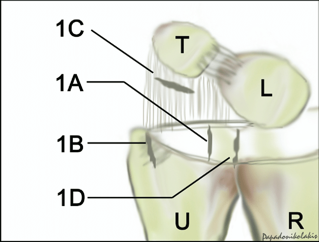 1C : Distal avulsion (origin of UL and UT ligaments)