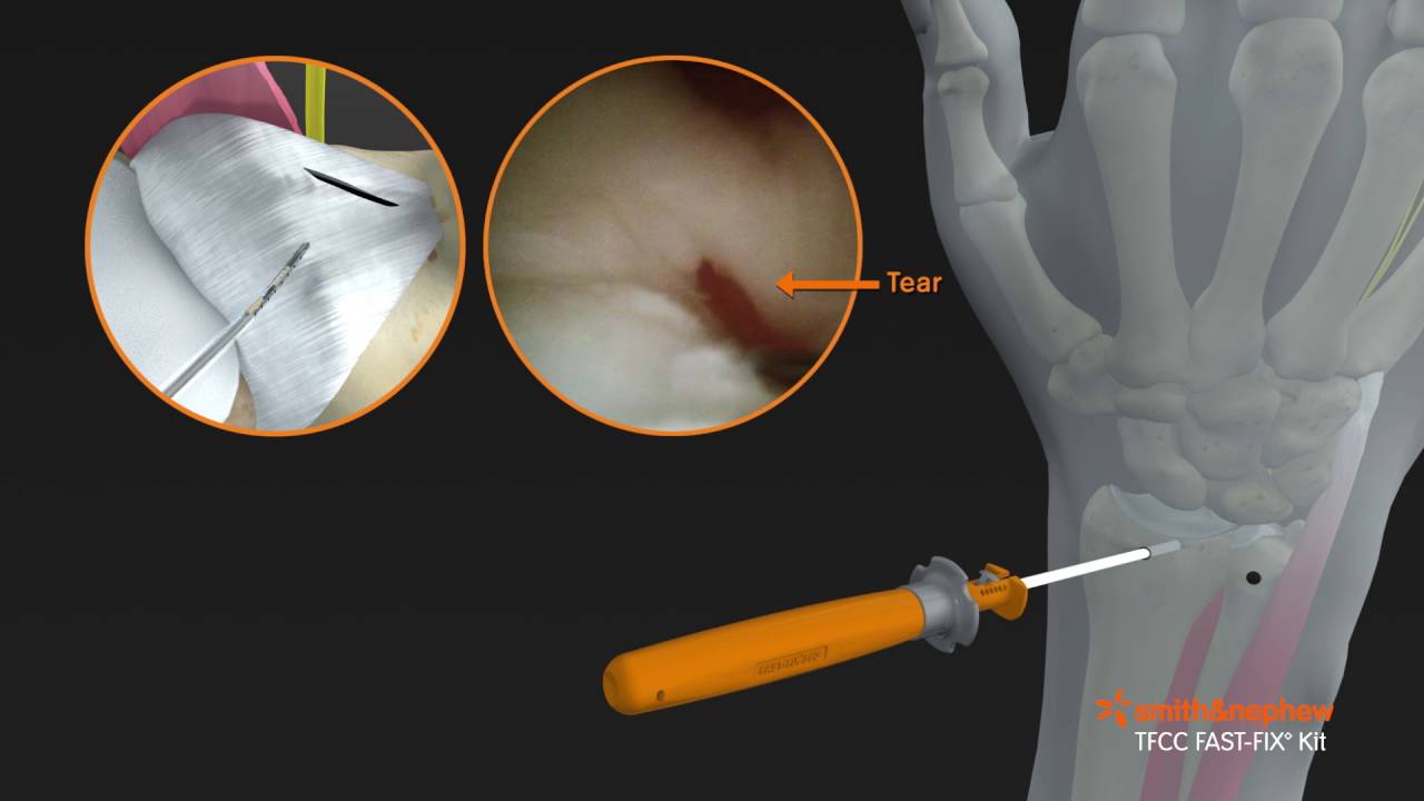 외상에 의한 손상의 기전은 전완부의 회전과 함께 수근 관절이 축성 압력(Axial loading)을 받거나 척측으로 견인력을 받는 경우인데, 주로 팔을 뻗은 상태에서 손을 짚고 넘어지면서 발생합니다. 급성으로 단순히 이 복합체에 단독 손상이 발생한 경우에는 대부분 보존적 치료로 가능하지만, 동반된 골절이 있거나 원위 요척관절의 불안정성이 있는 경우는 수술적 치료가 필요할 수 있습니다.