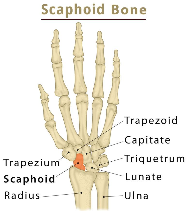 골치아픈 골절이 될 가능성 이 높은 ‘주상골 골절' 입니다. 엄지손가락 뼈와 연결되어 있는 '큰마름뼈' 안쪽에 있는 뼈 입니다.