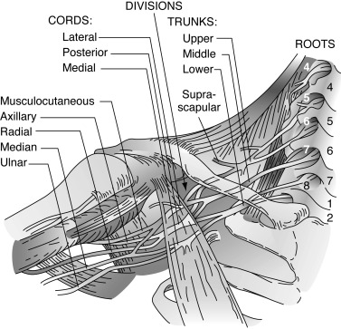 5개의 신경근에서 "위, 가운데, 아래" 의 몸통으로 나뉜 후에, 분할 과정을 거쳐