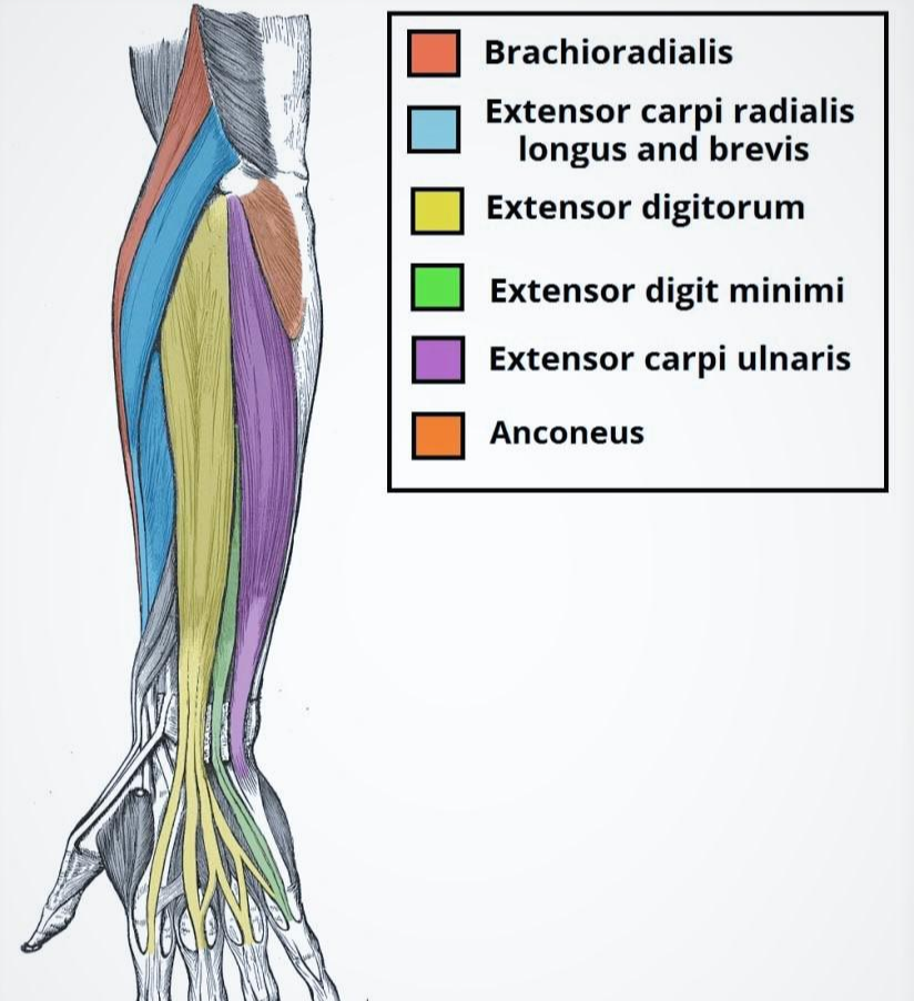 : Extensor carpi radialis brevis, Extensor carpi radialis longus(ECRB, ECRL)