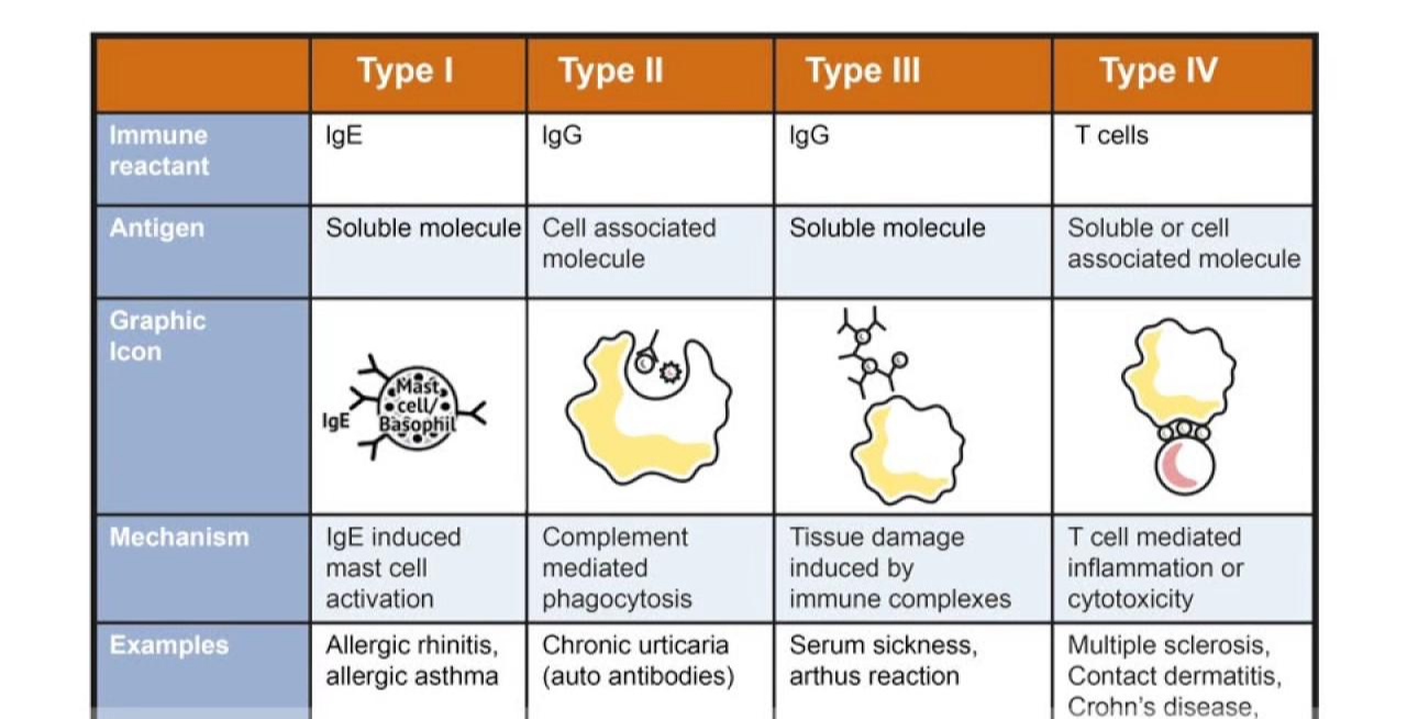 일단 우리 몸의 과민반응은 다음과 같이 네가지 종류가 있습니다.