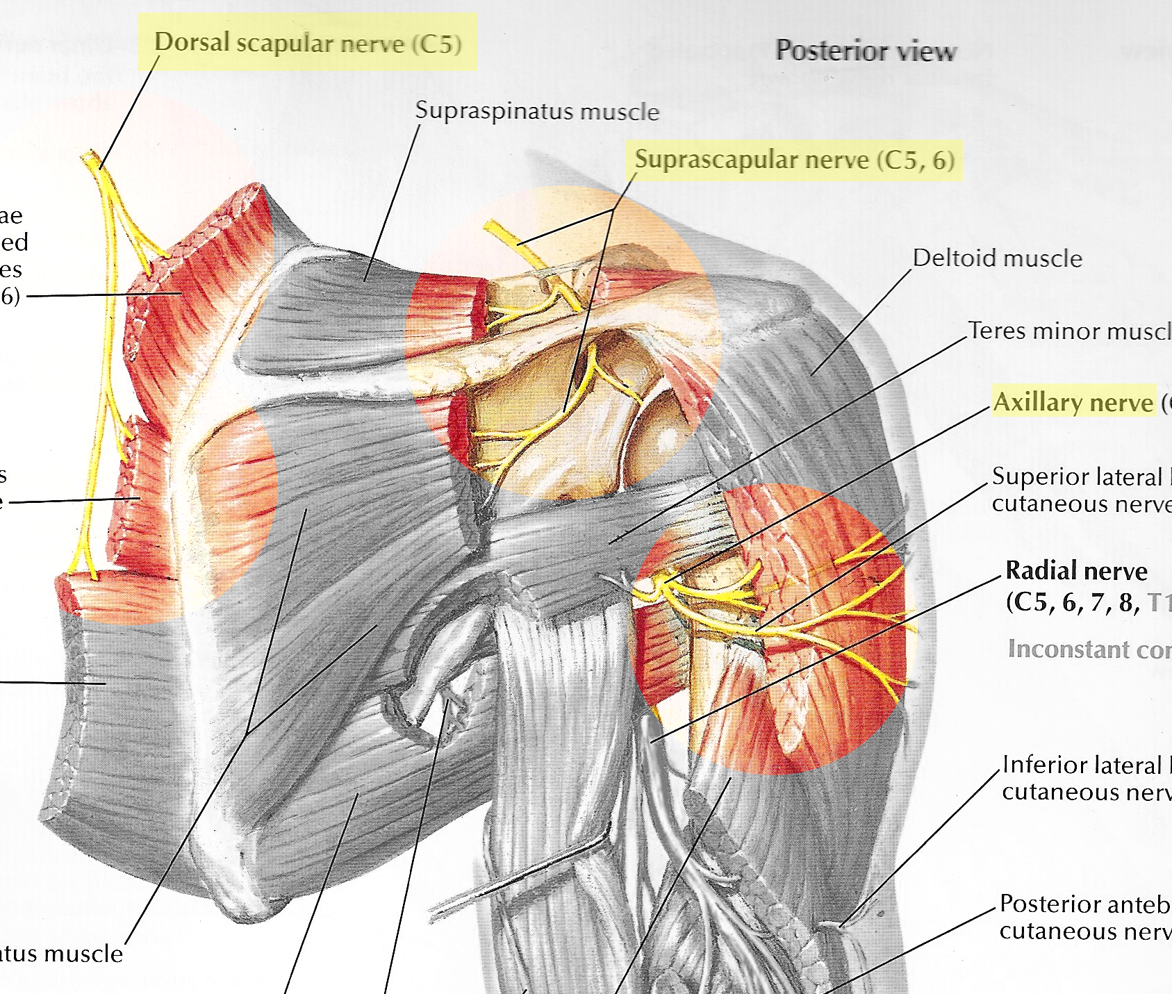 Dorsal scapular Nerve, Suprascapular nerve, Axillary nerve