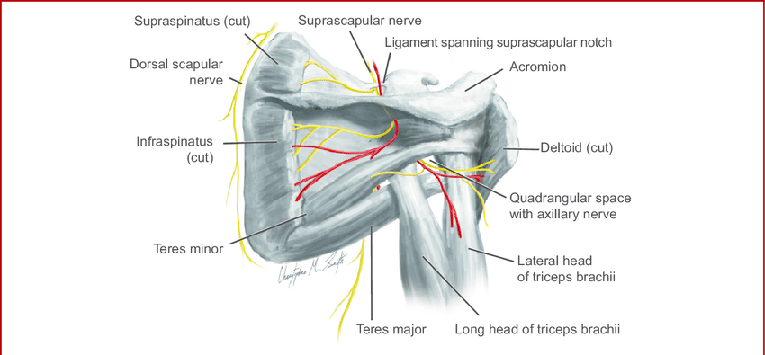 Dorsal scapular Nerve, Suprascapular nerve, Axillary nerve