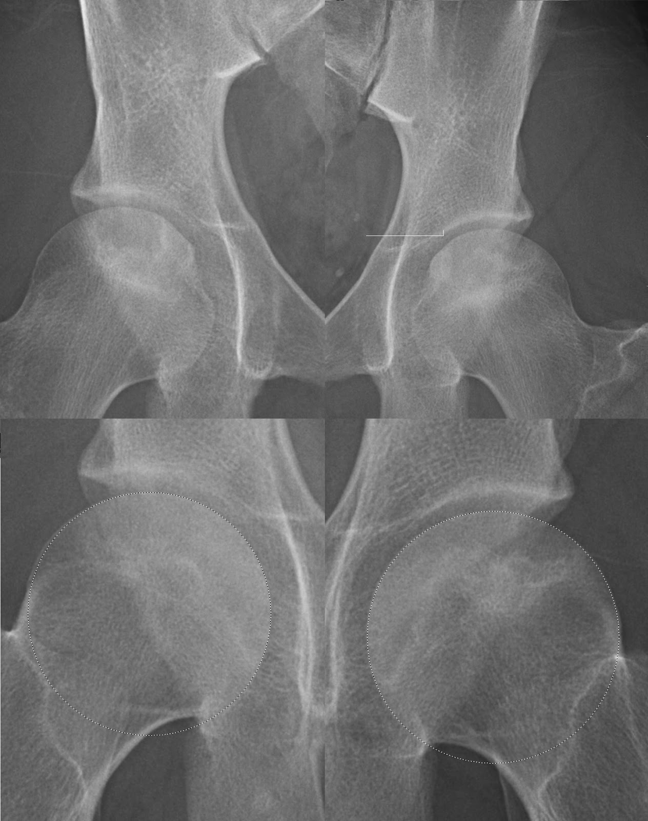소아에서의 골괴사(LCP)와 성인(AVN)에서의 골괴사의 양상은 다소 다르나 비슷하게 생각해보면 '혈류'의 부재 혹은 '관절염' 등이 심해져서 원래 위치하고 있어야하는 뼈들의 소실을 확인하게 되는 과정입니다.