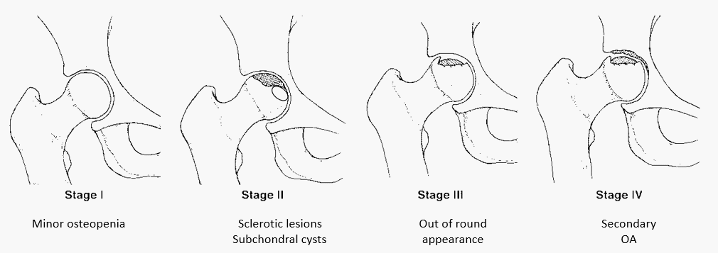 3단계부터는 골두의 심한 변형이 동반되어 보행시 절뚝거림이 시작될 수 있습니다.