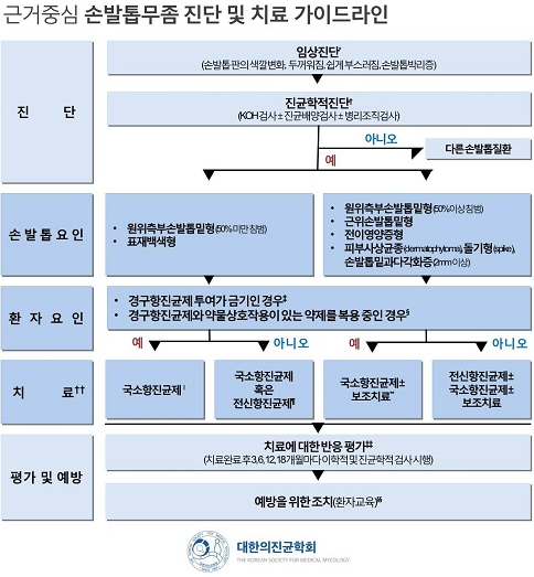 병변이 발톱의 50% 이상인 경우에는 전신진균제를 기본적으로 생각해 볼 수 있습니다.