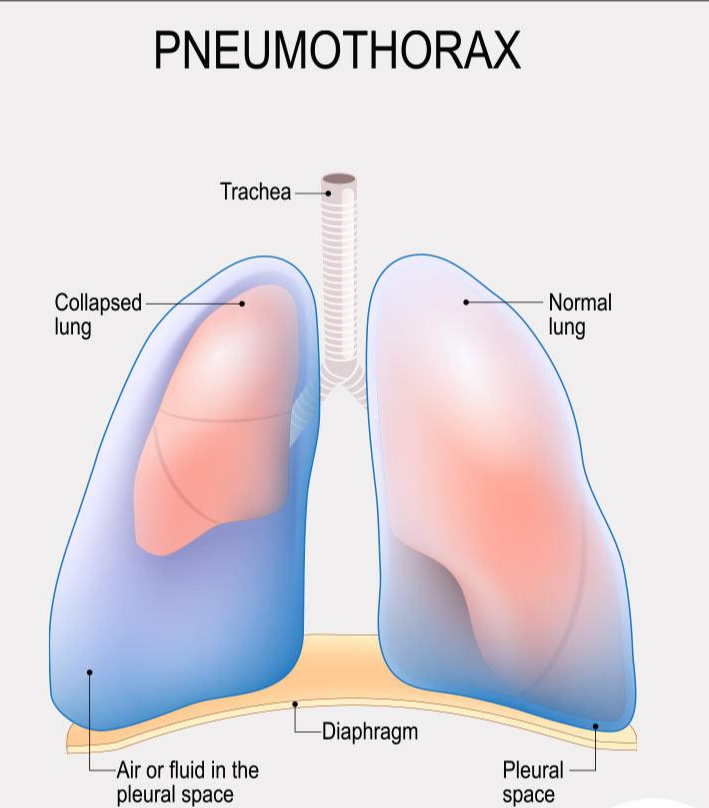 - 일차성 자연기흉 : 기존에 폐질환이 없는 건강한 사람에서 발생한 기흉 (키가 크고 마른 사람, 흡연, 대기오염)