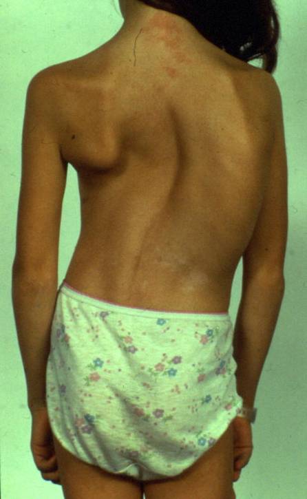 대부분 측만증은 20세 이전에 생기며 dystrophic type은 변형이 계속진행되는 타입이며, nondystrophic 은 변형이 멈추는 타입입니다. Dystrophic(이영양성) 의 경우 방사선학적으로 short segment, severe wedging vertebra, server rotation, rib의 90도 rotation, vertebral body scalloping, transverse processd spindling, foraminal enlargement 등을 확인해야합니다.