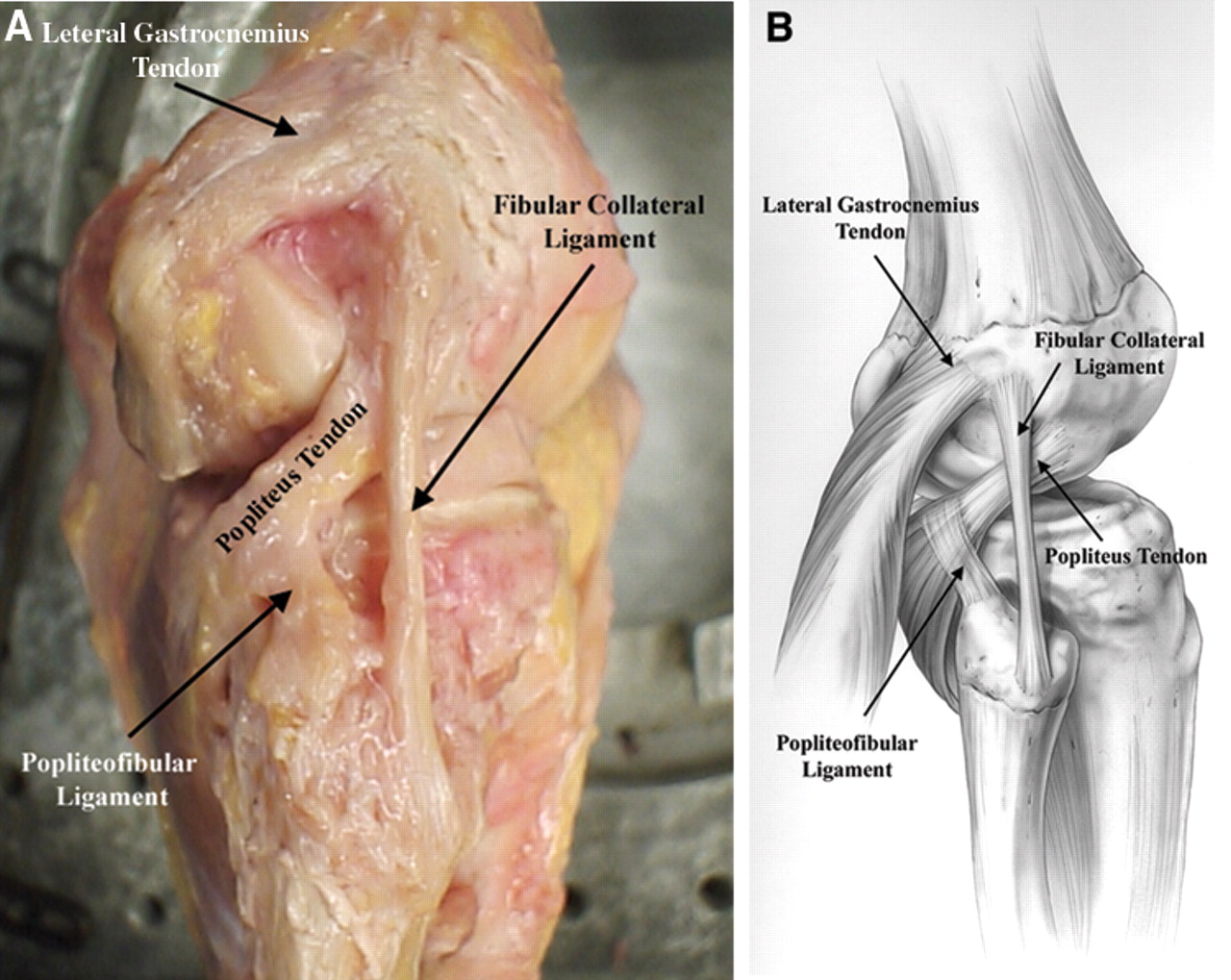 PLC 구조물은 여러가지가 있는데 LCL(lateral collateral ligament), popliteus tendon, popliteofibular ligament 이 세가지가 중요한 구조물이며, 그 외에 lateral capsule , arcuate lig, fabellofibular ligament 가 있습니다.